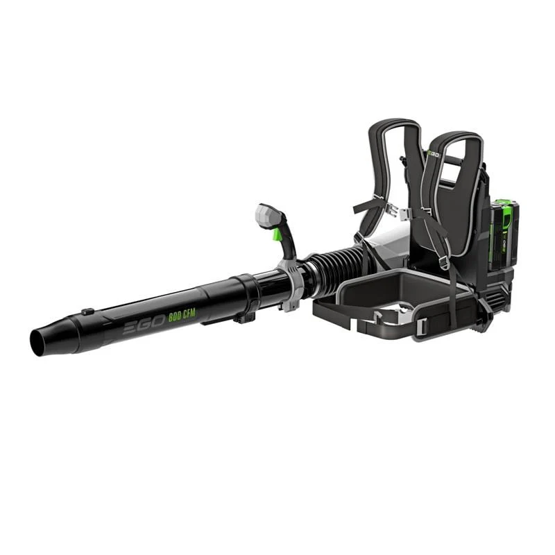 The next generation EGO Commercial 800 CFM Backpack Blower delivers 800 CFM, air speeds up to 190 mph, and 26N push force to power through the day. This battery powered backpack blower features a high performance 1,900W brushless motor with intelligent electronics to deliver power equivalent to a 60cc gas engine. Tailor performance with digital controls including a battery level indicator and speed control with turbo lock on the blowers fully adjustable hand grip and tube. Its commercial grade construction is built for 5X longer life with UV resistant composite housing and IPX5 rated weather resistance for all day professional use in the toughest conditions. This Commercial 800 CFM Backpack Blower runs up to 120 minutes on low, 30 minutes on high, and 25 minutes on turbo with two included 56V 6.0Ah ARC Lithium batteries. Maximize uptime and productivity with minimal start up tasks and less routine maintenance compared to gas blowers. EGO Commercial is setting the new standard in power, performance, and durability and its no longer driven by gas.